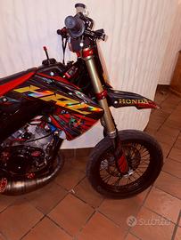vendo hm tpr 86 MOTORE -maxikit tpr 86 lavorato con 68 h -carter lavorati con trapano a colonna + fresino -pistone con 0h e camicia tagliata -pacco frt artigianale su misura -keihin 30mm ali -scarico stage 6 80-90 r/t -pompa acqua stage 6 -carter frizione nuovo nero CICLISTICA -telaio 2003 rinforzato sabbiato e verniciato a polvere nero brillantinato -pompa radiale adelin 16x18 -disco maggiorato e sposta pinza -gomma posteriore nuova pilot street michelin -forcelle revisionate con 0h -mono ammortizzatore sostituito 6 mesi fa con uno nuovo -rapporti 14-51 con corona sostituita 1 mese fa ACCESSORI -impianto semplificato energy sistem (non in foto) con frecce e luci per non avere problemi con polizia o carabinieri -specchietto basso omologato -pedalina cambio rossa krm -pedivella accensione rossa ergal -tubi radiatori rossi -paracolpi krm -piatta yz nera nuova senza grafica (vorrei tenerla di ricordo) e parafango acerbis -grafiche olo glitter usato sempre motul 710 e barthal kts al 2.5 per cento e a volte fatto pieno 100 ottani non ho fretta di venderla ed é stata trattata in maniera maniacale per davvero dato che ci sono molto affezionato vendo per passaggio a cilindrata superiore e scambio con 125 2t sx yz sherco sm tm smr carbu e simili con aggiunta di soldi da parte mia no perditempo solo persone realmente interessate numero 3664504878 prezzo poco trattabile