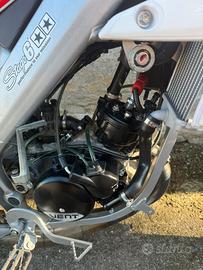 la moto ha circa 8000 km all attivo dopo 1000 km di rodaggio da casa madre è stato montato il gruppo termico top, insieme alla moto fornisco tutte le pastiche originali con scarico, carburatore, e gruppo termico (pari a nuovo) originali.