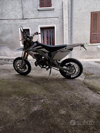 Vendo HM Vent 50 configurazione Motard (omologata anche enduro). La moto è in ottime condizioni, allestimento top con forcelle rovesciate, disco ant. maggiorato wave di serie. Al momento è stata portata completamente originale da ottima officina del bresciano, resta solamente montato da precedente elaborazione leggera albero top performance, doppio radiatore (ho anche il miscelatore automatico). Vendo compreso nel prezzo kit elaborazione composto da cilindro Dr 70, sistema di scarico Giannelli omologato, dell'orto da 21, pacco lamellare, dischi frizione ancora imballati e altre cose pronte eventualmente da rimontare La moto ha circa 11 mila km, revisione effettuata 09.2024 e mai utilizzata poiché, acquistata per mia figlia, non ha più conseguito il patentino. Tutto compreso 2300 euro.