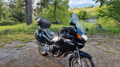 Anno immatricolazione 1998 Moto iscritta ASi registro storico. italiano con bollo 50% e assicurazione ridotta. ATTENZIONE: Può circolare nelle grandi città come Roma grazie alla deroga moto storiche. In buone condizioni: Tagliando eseguito settembre 2025 presso concessionario Honda ufficiale Da maggio 2025 ha girato solo 2900 km e la moto è ferma da ottobre 2025 con: - Gomma anteriore dunlop 1000 km -Gomma posteriore ancora un paio di stagioni - Pastiglie ant e post 90%, - Forcelle revisionate, - Paraoli nuovi - Cambio olio cardano, - Cambio olio freni - Controllo bullonatura generale Dotazioni: Faro anteriore luce led alta visibilità Serbatoio tankerizzato, Cupolino alto- touring Bauletto posteriore con portapacchi Ferri originale di manutenzione nel sottosella Il precedente proprietario è caduto da fermo, Ho ricostruito la staffa sinistra parabrezza in vetroresina, Borse laterali e serbatoio con qualche graffio. Usata la scorsa stagione per svago e qualche tragitto casa lavoro brevi tratti autostradali: motore fluido e affidabile e indistruttibile (lo stesso della mitica e indistruttibile Transalp). Moto eccezionale multiuso e per viaggiare. Manutenzione dal costo molto basso. Bollo pagato. Revisione settembre 2027. Vendo per passaggio ad altra categoria. Sono a Fiuggi e la moto è visibile eventualmente anche a Roma. NO affaristi squalo, NO perditempo.