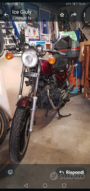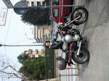 Moto storica in perfette condizioni. Tenuta sempre in garage. Revisione e tagliando completo con cambio pneumatici dic 2024. Batteria nuova dic 2025. Tassa di circolazione e assicurazione agevolata. Regalo borse laterali in pelle e bauletto. Piccolo taglio sulla sella da sigillare. Prezzo non trattabile.