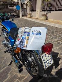 Strepitosa Honda Four 500 K2 1976 colore Candy Saffre Blue (Blue Zaffiro) finemente restaurata in tutto nel 2016 da nota maison Milanese e usata solo per manifestazioni. Meno di 700km da fine restauro. Pubblicata su rivista del settore come esempio di restauro eseguito a regola d'arte. Gelosamente custodita in garage con documenti originali e trousse attrezzi. Le foto parlano da sole. Solo gente seria e competente. Alexandro 340-3599028
