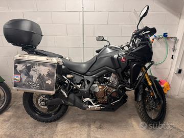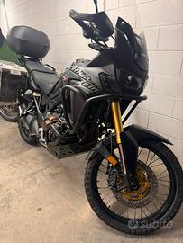 Honda Africa Twin del 2016, 1000 DCT, 45000 km circa, nera, valige laterali alluminio, bauletto Givi, barre e piastra paramotore, fari di profondità. Nessun lavoro da fare. 8000 euro.