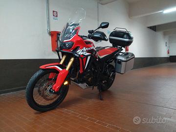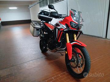 Vendo Africa Twin 1000 dct km 37800 Perfetta, revisione appena eseguita, bollo pagato. Tagliandi eseguiti sempre Honda Tagliando completo con catena e pignone km 32000 Sempre tenuta in garage. Mai fatto fuoristrada. Cambio gomme e camera d'aria km 34000 Metzeler Batteria nuova Accessori: Tris di valige GIVI Cavalletto centrale Manopole riscaldate Presa 12 volt Presa per navigatore Cupolino chiaro Para carene alto e basso Paramotore Camera d'aria di scorta Cupolino scuro alto opzionale