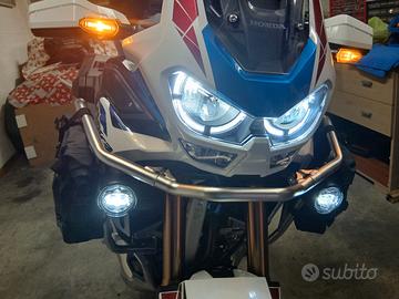 faretti,paramotore e tris bauli,in piu è dotata di manopole riscaldate abs parabrezza regolabile,sella regolabile,schienalino passeggero,km 25000 tutti i tagliandi Honda,ultimo fatto 800 km fa,gomme 80%,moto ancora in garanzia della casa per altri 4 anni,pari al nuovo.