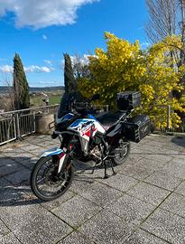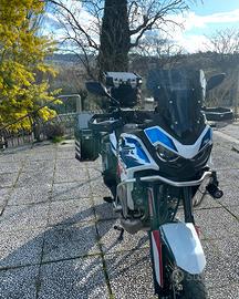 Vendo Africa twin 1100 ES, quella con i settaggi elettronici per intenderci. Oltre alla dotazione di serie che comprende sospensioni elettroniche in varie modalità, la moto presenta i seguenti accessori: Barre paramotore e para carena; Faretti aggiuntivi. Cambio sequenziale up down quiksfhiffer; Cavalletto Centrale; Cupolino fume givi e supporto per eventuali accessori; Copri sella imbottito per una migliore seduta; Proteggi serbatoio; Allargamento cavalletto laterale; Telai out Bach Givi con tool box. La moto ha percorso 15000 km regolarmente tagliandata e gode di altri 4 anni di garanzia ufficiale. Bollo pagato fino febbraio 2027. Le valigie e il baule non sono in vendita Euro 15000