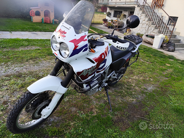 Vendo stupenda Honda Africa Twin XRV RD 07 del 04.1999 con 74000 km. Eseguiti ultimamente diversi lavori : revisione completa freni (pinza anteriore e posteriore ) + cambio tubi, nuova pompa benzina a depressione Boano, kit vaschetta carburante nuovo, trattamento interno di verniciatura serbatoio, batteria yuasa, filtro benzina, comando rubinetto benzina nuovo, kit trasmissione completo nuovo, gomme nuove. Marmitta LeoVinci + marmitta originale. Compreso anche ammortizzatore maggiorato. Leggermente graffiata sul fianchetto destro. L'ho sistemata al meglii per usarla in viaggi, ma causa sopraggiunti imprevisti mi trovo a venderla.
