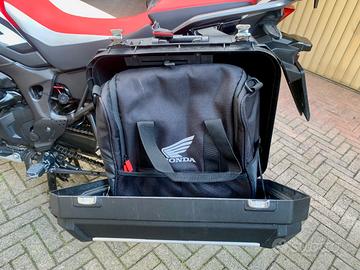 Moto perfetta, sempre tenuta in garage e coperta con telo e manutentore batteria nei periodi più freddi. Mai incidentata ne caduta. Eseguito tutti i tagliandi presso concessionaria Honda. Installato cruise control elettronico (sul modello 2018 non era previsto). Completa di cavalletto centrale, tris di valigie originali incluso borse interne Honda sia per le valigie che per il bauletto. A parte il bauletto, le valigie laterali le ho usate due o tre volte. Gommata nuova l'anno scorso, quindi i pneumatici sono al 90%. Modello DCT con cambio automatico doppia frizione rapidissimo, ma si può usare anche in manuale. Mappature motore Road, Rain e Gravel o programmabile dall'utente. Modalità di guida settabile su Drive e tre livelli SPORT. Io sono l'unico proprietario. Per ulteriori informazioni non esitate a contattarmi qui sul sito.