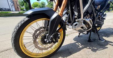 Moto impeccabile come da foto, Full optional , quindi cambio DCT, manopole riscaldate, cavalletto centeale, fari adattivi, set 3 valigie, tubolari riparo motore,carena e serbatoio sospensioni elettroniche, sella posizionabile 2 posizioni, più staffa porta tomtom autoalimentato staffa porta quad look paramani in alluminio barckbuster cavo abbigliamento riscaldato klan e macna cavo mantenitore batteria originale honda e mantenitore optimate honda , cerchi oro con pneumatici tubles, cupolino rialzabile, ripari in gomma serbatoio, gomme al 70%, serbatoio con pieno benzina sempre fatto. I km della foto sono quelli di oggi, ma io la moto ogni tanto la uso e quindi aumenteranno un po