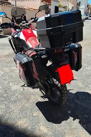 Vendo per passaggio ad altro modello splendida Honda Africa Twin CRF1000L con cambio sequenziale DCT (anno 2016). La moto ha 86.500 km, regolarmente manutenzionata e pronta per qualsiasi prova. Interventi appena eseguiti: Tagliando completo appena effettuato. Gomme nuove appena montate. Kit trasmissione nuovo (catena, corona e pignone sostituiti). Pasticche freni posteriori nuove. Revisione appena fatta. Accessori e Plus: Faretti a led con tasto al manubrio. Cerchi Tubeless. Barre para motore GIVI. Tris valigie originali Honda: Bauletto e borse laterali Attacco borsa serbatoio Givi Sella personalizzata ideata per la comodità nei viaggi. Supporto Quadlock su manubrio e attacco GoPro su bauletto. La moto è meccanicamente perfetta, ideale per chi cerca un mezzo affidabile e già gommato/tagliandato per la stagione. Altre foto su richiesta. Accetto offerte ma non mi contattate con prezzi folli.