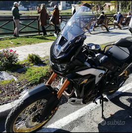 Vendo Africa Twin Adventure anno 2021 con cambio meccanico,km 38000. ancora in garanzia. Tagliandi tutti in regola, fatti in concessionaria Honda, con tris di valigie originali Honda e faretti di profondità, o scambio con moto sportiva.