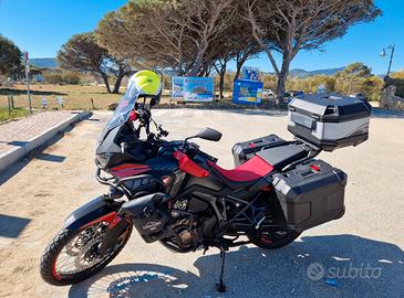 Vendo honda africa twin super accessoriata. Immatricolata agosto 2023. Sempre seguita in casa madre honda , con annesse fatture dei lavori. Ultimo tagliando svolto una settimana fa insieme alla batteria , presso concessionario ufficiale honda . Insieme alla moto do anche due bauletti laterali e uno posteriore originale honda e un altra sella di colore nero , vendo per mancato utilizzo . Prezzo trattabile dopo visione