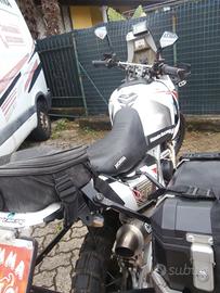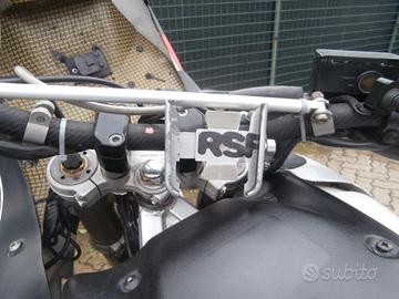 Cupolino carbon kevlar, carena Boano, faretti Touratec, cerchi Excel, grafica B100, scarico Arrow, paramani Touratec, specchietti, borsa in tessuto, copri forcella in carbonio.