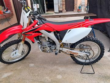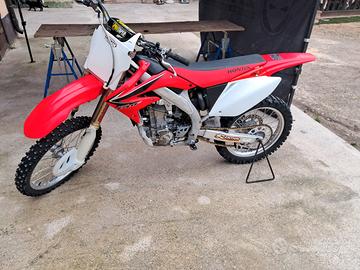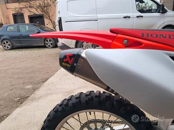 Vendo crf 450 r 2008 in ottime condizioni.presa nuova e usata solo livello amatoriale nei campi,mai pista!!.monta scarico akrapovic completo!svariati ricambi compresi;scarico originale ,kit di manutenzione motore honda originale ( pistone ,fasce elastiche ,guarnizioni ecc) che davano all'acquisto della moto, manubrio originale,filtri di scorta doppio kit di plastiche nuove .la moto presenta 43 ore effetive di utilizzo, praticamente seminuova !. Ho altre foto per quanto riguarda la ricambistica .per favore no perditempo !! Moto per veri intenditori del settore .