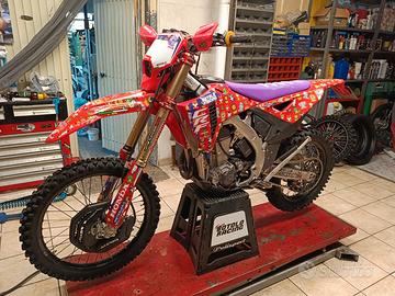 Vendo Honda 450 RX 2025 Attualmente ha 66ore Uso amatoriale Tenuta in ottime condizioni, è pari al nuovo. Vendo per cambio cilindrata. Tripla omologazione, la moto viene venduta in configurazione originale. Serbatoio, plastiche originali ,piastre sterzo, pedane, sella ecc mai usate Chiedo 9300? Non scambio, non sognatori ecc...