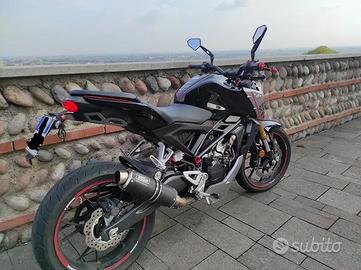 Vendo Honda CB 125 R anno 2019 con 41.300 km. La moto è in ottime condizioni, è tenuta con cura e non ha mai fatto incidenti. È arricchita da numerosi accessori installati, tutti omologati. Tra questi ci sono: portatarga, scarico Giannelli (con DB Killer inserito), specchietti e stabilizzatori del manubrio. Le gomme sono in buone condizioni. Nel prezzo sono compresi anche tutti i pezzi originali. Viene consegnata con doppia chiave. La moto è ideale anche per neopatentati ed è paragonabile a altri modelli come KTM Duke 125 e Kawasaki Z125.