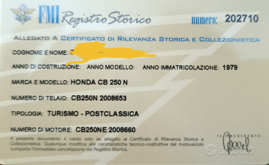 Vendo Honda CB 250 N ,anno di costruzione 1979. Iscritta FMI. Come nuova, 14.000 km originali, targata MI 5...... Tenuta sempre in garage. Io sono il secondo proprietario. Sella in perfette condizioni,marmitte originali, non un graffio. Revisione valida sino ad Ottobre 2027. Parte al primo colpo. Essendo moto di epoca,non paga bollo , assicurazione ridotta. Per essere una moto di 46 anni, è una chicca. Se interessati, potete portare il vostro meccanico di fiducia per un controllo. La vendo perché è diventata un po' pesante per me , essendo vicino ai 70 anni. Prezzo Euro 1700.