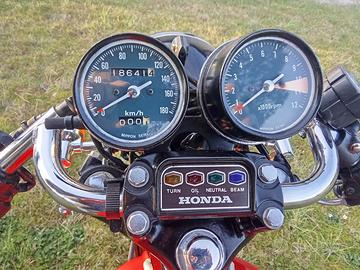 Moto Honda 350 cafè racer del 1975 con 18641 km originali. Iscritta A.S.I. batteria nuova e filtro olio da montare.