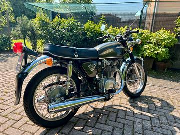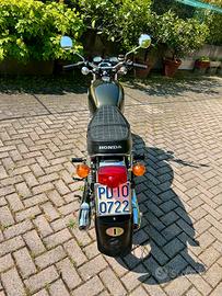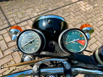 Vendo per motivi di salute, Honda CB 450 FOUR-Double Over Head Cam del 1974. Perfettamente funzionante e Iscritta ASI, certificata dalla commissione moto d'epoca. Totalmente originale, restaurata nelle finiture originali (colore serbatoio e cromature scarico) e completa di tutte le sue parti originali (copri libretto, borsellino kit riparazione e borse). Competa di telaio e borse in pelle, entrambi originali (vendibili anche separatamente). Revisione da fare ma con batteria nuova.