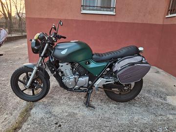 Prezzo: 2.500 € (Trattabile) Chilometraggio: 42.000 km Anno: 1998 Descrizione dell'annuncio: Vendo bellissima Honda CB 500 del 1998, un’icona di affidabilità Honda, in ottime condizioni generali. La moto è stata personalizzata con gusto in stile modern-classic/cafe racer, perfetta per chi cerca una moto scattante, facile da guidare e con un look unico. Interventi e Manutenzione: Trasmissione: Kit catena, pignone e corona appena sostituiti (nuovi). Pneumatici: All'80%, pronti per macinare chilometri. Stato meccanico: Regolarmente controllata, motore fluido e potente. Caratteristiche e Accessori: Colorazione verde opaco con sella custom trapuntata. Borse laterali morbide GIVI incluse (come da foto), ideali per piccoli viaggi o uso quotidiano. Pezzi Originali: Disponibili e inclusi nel prezzo per chi volesse ripristinare il look originale o per future iscrizioni ASI/FMI. La moto ha 42.000 km originali, un chilometraggio bassissimo per questo motore, noto per la sua leggendaria longevità. Prezzo: 2.500 € leggermente trattabili dopo visione. Note: Massima serietà. No perditempo o sognatori. La moto è pronta all'uso, non necessita di alcun lavoro immediato.
