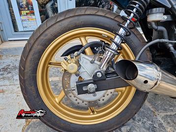 Honda CB 500 cafè racer - custom Anno 2000 Colore Blu Kw 42 Km 60.000 Il prezzo scontato del veicolo è di €1.650, nel caso di ritiro usato il prezzo di partenza è di €1.850 Ammortizzatori Yss Freni Brembo Kit trasmissione oro Gomme 90% Sospensioni perfette Manubrio PBR Specchietti al manubrio Vernice perlata Tagliando completo alla consegna €300 per riparazione e vernicitura serbatoio e trattemento alla tancherite interno Siamo una concessionaria specializzata nella vendita di moto, quad, moto d'acqua, scooter, minicar, minimoto, moto da cross, auto, accessori e abbigliamento dedicato. Contattateci per visionare i veicoli disponibili presso le nostre sedi: Pietramontecorvino (Fg), Termoli (Cb). o Possibilità di consegna in tutta Italia. o Assicurazione e disbrigo pratiche di voltura e immatricolazione direttamente in sede. o Possibilità di finanziamento anche senza anticipo. o Ritiro usato con super valutazione e incentivo rottamazione. ( Specificare: anno, modello, versione km, stato estetico, gomme, cronologia, tagliandi proprietari e zona di residenza. I dati richiesti sono tutti necessari per un preventivo da confermare dopo visione.) o Permute con auto, moto, quad, pit bike, moto d'acqua, bici, ecc. o Extra sconto su abbigliamento e accessori riservato a tutti i clienti che acquistano una moto presso il nostro showroom. I contenuti degli annunci necessitano di conferma telefonica al numero: in quanto suscettibili di errore, pertanto non hanno validità contrattuale. Tutte le nostre offerte di moto nuove e usate sono disponibili sul nostro sito: RINALDOMOTORS Per le info e offerte sull'abbigliamento dedicato visitate il sito: STORE.RINALDOMOTORS Per info: -
