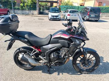 Honda CB 500X in perfette condizioni, sempre custodita in box privato, regolarmente tagliandata, completa di cavalletto centrale, bauletto GIVI 46lt, barre para carena e para motore, leve snodabili Accossato, para mani, telai porta borse laterali GIVI. Agile divertente e dai consumi irrisori, guidabile con patente A2, vendo per passaggio a cilindrata superiore. No conto vendita, astenersi perdi tempo