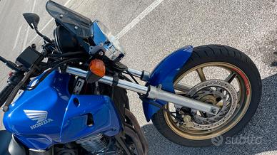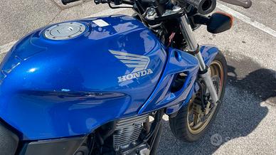 La Honda CB 500 è a posto, viene regolarmente usata. Dotata di copri-sella a nido d'ape, doppio freno a disco Brembo, doppio cavalletto (laterale e centrale), immobilizer su cavalletto abbassato, capiente bauletto Givi da 45 L, pneumatici Michelin Pilot in buone condizioni. Bollo pagato fino a febbraio 2027. Presa smartphone su cruscotto, cupolino trasparente, comoda seduta per il secondo passeggero. Vendo con rammarico per cambio modello.