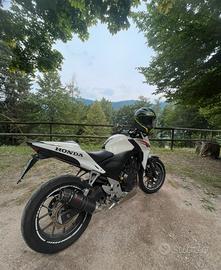Vendo Honda CB 500 F del 2014. Bellissima e divertente da guidare con patente a2 (con consumi molto ridotti). Gomme ancora al 80%, kit di trasmissione sostituito pochi km fa, spurgo dei freni fatto pochissimo tempo fa. Appena fatto il tagliando, presso casamadre Honda (fatto ad ottobre e poi ho messo via la moto), dove hanno controllato tutta la moto, sostituito olio motore, messo a regime tutti i liquidi, sostituito le candele, cambiato alcune componenti (tappo, viti, ecc…), e ho appena sostituto il faro con una luce a led, quindi la moto é in perfette condizioni. PRONTA ALL’USO NESSUN LAVORO DA FARE! Monta scarico full carbonio MIVV, nuovo, l’ho sostituito a giugno. Alcune power parts (cupolino barracuda, specchietti barracuda, leve cambio e frizione in ergal rosse entrambe regolabili, frecce sia anteriori che posteriori barracuda, porta targa più corto). Oltre a cio monta un porta telefono e carica batterie USB! Tutte cose omologate e originali. Unghia posteriore (sostituisce il posto del passeggero per rendere la moto più sportiva). Comunque possiedo tutte le componenti di base originali (scarico, specchietti, frecce, sellino passeggero)… E anche una batteria nuova mai aperta. Il prezzo indica la moto originale, per la moto con lo scarico MIVV (pagato 430€), chiedo 2900€. Per la moto tutta originale, senza power parts e modifiche posso scendere anche a 2500€. Prezzo leggermente trattabile! Sono a disposizione per qualsiasi info o domanda!