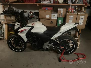 La moto é un Honda cb 500 F del 2014.