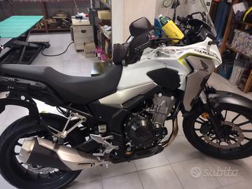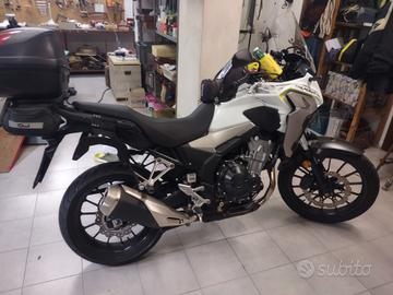 HONDA CB 500X Anno 2019 km 30000 Cartucce forcella e ammortizzatore regolabili Matrix . Perni ruote e forcellone in Titanio Grado 5 .Viti Link e altre in Titanio Grado 5 .Altri pezzi in Titanio e Ergal . Borse laterali Hepco e Becker semi rigide con staffe dedicate in Ergal .Bauletto posteriore Givi. Batteria Litio Aliant.