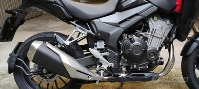 Honda CB 500 X pari al nuovo, immatricolata a Giugno 2022, unico proprietario, chilometraggio 1400 Km, sempre tenuta in box (con mantenitore carica batteria durante periodo invernale). Accessoriata con cavalletto centrale, presa 12V, parabrezza alto, paramani, paraspruzzi posteriore e bauletto GIVI in alluminio da 46 litri (con doppia apertura) su piastra predisposta per valigie laterali, antifurto meccanico ad U originale Honda (maniglioni posteriori smontati in dotazione). Moto polivalente, con ottime prestazioni e bassissimi consumi (circa 30 Km/Lt). Manutenzione programmata effettuata, bollo pagato fino a Luglio 2026. Vendesi per inutilizzo dovuto alla distanza dal luogo di lavoro. Vera occasione, pronta consegna e visibile a Torino su appuntamento (se seriamente interessati).