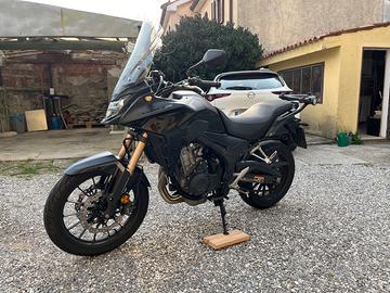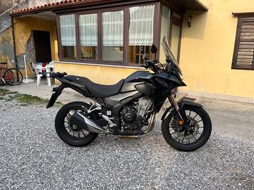 Vendo Honda CB500X ABS immatricolata nel 2022, moto estremamente affidabile e versatile, perfetta sia per uso quotidiano che per viaggi. Bassi costi di gestione e consumi contenuti. La moto è sempre stata utilizzata con cura, è stata tenuta all'aperto ma regolarmente mantenuta e tagliandata presso concessionario ufficiale. Presenta normali segni di usura. Gomme 80%. La moto è stata usata fino a qualche giorno fa, è pronta all'uso (prossimo tagliando autunno 2026). Vendo per passaggio a cilindrata maggiore. Vendo con i seguenti accessori compresi nel prezzo: - parabrezza maggiorato fumè (+ originale) - presa USB originale Honda - piastra per bauletto Givi attacco Monokey (+ maniglie passeggero originali) - sella fatta imbottire con gel e rifoderata con materiali migliori da sellaio professionista (più comoda dell'originale). Prezzo leggermente trattabile dopo visione e per interessati seri.