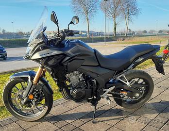 Honda CB 500 X 2022, 8330km, ottime condizioni, tagliandato e con pneumatici nuovi! Caratteristiche modello: l?unica vera crossover a potenza piena (35 kW, 48 CV) per patente A2 sfoggia la sua attitudine offroad con un eccitante stile adventure, una notevole protezione aerodinamica, sospensioni a lunga escursione, ruota anteriore di 19" e manubrio biconico rialzato. Il grintoso motore bicilindrico parallelo offre coppia e potenza corposi a regimi bassi e medi ed ? dotato di frizione assistita con antisaltellamento. La strumentazione LCD a retroilluminazione negativa e le luci full?LED, compresi gli indicatori di direzione, rendono la CB500X un modello premium.