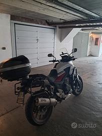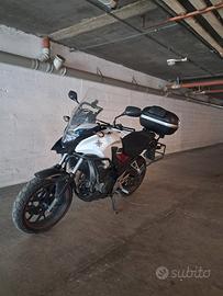 vendo honda cb 500 x anno 2017, quindi modello 8 valvole con entrambi i cerchi da 17. La moto ha 74k km, ma va come un orologio svizzero. Sempre tagliandata con olio 100% sintetico ogni 6000 km e filtro olio ogni 12000 km. La moto é stata accessoriata con manubrio a piega bassa, piastra bauletto posteriore e telaietti per bauletti laterali, adesivi rossi per i cerchioni, barre paracarene e paramotore laterali, scarico gpr trioval con relativo collettore e db kliller estraibile, ovviamente dispongo anche dello scarico originale. Il trittico, marchiato D.I.D, é in condizioni molto buone, é stato montato a 66k km e sempre stato lavato e ingrassato ogni 400 km. La moto é sempre stata tenuta in garage. É gommata all'anteriore con tkc70 continental con 5k km e al posteriore con metzeler roadtech 06 con nenche 100 km. I consumi sono praticamwnte irrisori, caratteristica tipica si questo modello, finora non ha mai consumato un grammo di olio, nonostante in chilometraggio, che, seppur esiguo per questo tipo di moto, non é basso. A 58k km é stata cambiata la guarnizione del termostato che perdeva qualche gocciolina quando in pressione. Le pastiglie anteriori sono state cambiate a 70k km mentre quelle posteriori ai 65k. L'impianto è stato regolarmente spurgato ogni 5k km. Per qualsiasi informazione contattarmi via messaggio o chiamata al numero 3666929000, la moto si trova a Modena ed è disponibile per essere visionata ed eventualmente provata. Il prezzo é trattabile di persone e se realmente interessati.