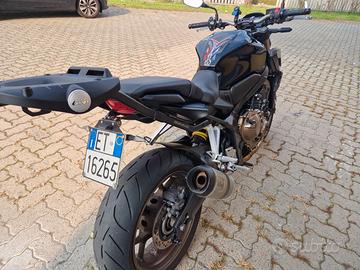 Vendo honda cb650r del 2020 con 31916km. La moto è in ottime condizioni, monta uno scarico completo leovince omologato, filtro sportivo bmc,presa d'aria cubicate in carbonio nuove, griglia radiatore nuova, cupolino cubicato in carbonio nuovo, portatarga barracuda e soprattutto batteria nuova montata a fine stagione. Gomme ancora al 60%. Catena, corona e pignone con all'attivo 1000km. La moto presente soltanto un graffio sul Carter dovuto ad una caduta da fermo del precedente proprietario. Moto tenuta e mantenuta da vero amatore. Viene venduta già tagliandata e con tutte le sue parti originali. Do e pretendo massima serietà, quindi no affaristi e perditempo.