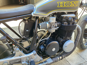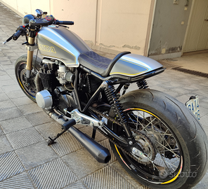 Vendo cafè racer su base Honda CB 650 del 1983. Moto autocostruita senza badare a spese. Telaio riverniciato, cerchi faba Easy tubeless, avantreno con forcella steli rovesciati, pinze radiali, dischi maggiorati, tubi in treccia, telaio monoposto con codino artigianale in vetroresina, conversione freno posteriore da tamburo a disco, strumentazione Daytona più tante altre cose....