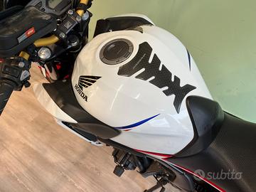Manopole Domino Racing, manubrio piega bassa, frecce anteriori Lightech, portatarga Lightech, frecce posteriori sequenziali, cupolino basso finitura carbonio, specchietti a lama aftermarket (sportivi) + specchietti originali disponibili.
