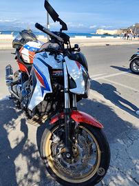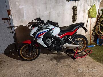Vendo Honda cb650f in perfette condizioni,monta scarico completo Arrow,filtro aria sportivo della BMC,kit trasmissione DID,porta targa rizoma,frecce a led dinamiche,specchietti ad ali di gabbiano,gomme Pirelli Diablo corsa 2 con 1000 chilometri, tagliante appena effettuato con olio motul 7100 e filtro olio,pastiglie freni Brembo blu,candele cambiate da 3000 chilometri,non ha nessun tipo di problema potete portare anche un meccanico Honda per visionarla,la moto è pronta per affrontare la stagione estiva,non perdi tempo contattare solo se realmente intenzionati! Disponibili tutti i pezzi originali della moto!
