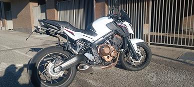 Vendo Honda Cb650f in ottime condizioni. 27700km, tagliando e gruppo trasmissione con 4000 km circa presso officina Honda, gomme Dunlop MK 4 con 3000 km, doppia presa USB, cupolino, staffe Shad e bauletti Sh23 e 35,pastiglie anteriori e olio impianto freni nuovi.