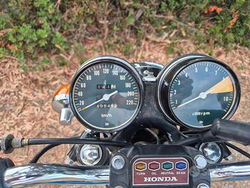 CB 750 Four stupendamente conservata, verniciatura e cromature originali, scarichi nuovi originali HM, sella nuova, catena di distribuzione e frizione fatte a 47.000 km, serbatoio con trattamento interno ceramico, gomme e camere montate 4 anni fà, targa e libretto a pagine originale, moto in mio possesso dal 1995 , acquistata con 45.000 km.