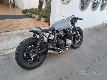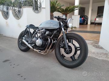 Vendo per mancanza di spazio, honda cb 750 in stile cafe racer...la moto è del 1983 e già iscritta ASI quindi esenzione bollo e assicurazione ridotta. La moto è perfetta e pronta all'uso, con vari accessori montati come marmitta 4 in 1 delkevich, centralina bluetooth, gomme nuove, tagliando ok, verniciatura nuova colorazione grigio nardò ecc ecc. La moto ha un sound fantastico e prestazioni da vera sportiva