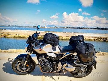 Vendo Honda CB1000R 145 CV in condizioni perfette tagliandata a gennaio, sempre in garage, garanzia Honda fino a 11/2027 accessori: Scarico Arrow titanio omologato. Borse laterali GIVI Corium con attacchi a sgancio rapido Manopole riscaldate Oxford pro touring ( scatola e libretto) Dashcam integrata ant/post Viofo mt1 con sistema di protezione sottochiave ( manuale e libretto) Cupolino Griglia radiatore Presa tipo C a manubrio Scarico originale