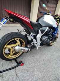 Vendo bellissima Honda CB1000R extreme 2011 con 41000km per cambio modello, molto accessoriata e tenuta in modo impeccabile. Accessori: 2 serie di specchietti+originali, monoposto originale,sella in Alcantara ,terminale omologato gpr, copri catalizzatore mivv, manopole e leve freno e frizione, tappi copri liquidi in alluminio,copri carter motore,presa USB sul manubrio con voltmetro. Gomme al 50%. +Tutti i componenti originali NO commercianti! NO AFFARISTI! prezzo 6000,00? leggermente trattabile solo dopo visione.