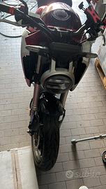 Vendo moto incidentata motore integro gomme nuove meccanica integra danni riparabili scarico omologato nuovo compreso anche quello originale più ulteriori ricambi nuovi copri serbatoio originali . Tagliandata certificata km 19.950