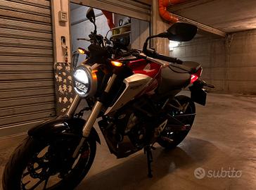 Vendo fantastica Honda CB125R del 2019, posseduta sempre da me fin da nuova quindi UNICOPROPRIETARIO. Manutenzione effettuata costantemente presso casa madre. Monta scarico completo inox MIVV omologato, filtro aria sportivo K&N, porta targa accorciato e gomme nuove Dunlop. Moto perfetta meccanicamente ed esteticamente, nessun lavoro da eseguire e pronta per affrontare qualsiasi viaggio. Possiedo tutti i ricambi originali Prezzo trattabile Possibilità di consegnarla a domicilio 🏠