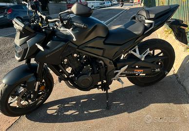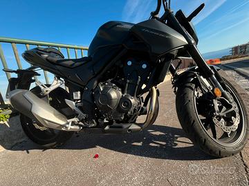 CB500 Hornet immatricolata nel 11/07/2024. Moto con 48 cv (35 kW, guidabile con patente A2), colore Black Metallic, compreso di blocca ruota posteriore. Secondo tagliando fatto il 24/09/2025. Garanzia Honda fino al 11/07/2030