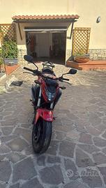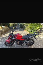 Vendo Honda cb 500 f del 2016 tenuta in modo perfetto. Vendo per inutilizzo in quanto era di mio padre che purtroppo non c’è più. Il prezzo è trattabile ma non la regalo perciò cerco solo persone che sono eventualmente interessate e non affaristi. Sotto riporto la scheda tecnica. Misure LUNGHEZZA 2.080 mm LARGHEZZA 790 mm ALTEZZA 1.060 mm ALTEZZA MINIMA DA TERRA 155 mm ALTEZZA SELLA DA TERRA MIN 785 mm ALTEZZA SELLA DA TERRA MAX n.d. INTERASSE 1.410 mm PESO A SECCO n.d. PESO IN ORDINE DI MARCIA 190 kg Motore CILINDRATA 471 cc TIPO MOTORE termico TEMPI 4 CILINDRI 2 CONFIGURAZIONE CILINDRI in linea DISPOSIZIONE CILINDRI trasversale INCLINAZIONE CILINDRI - INCLINAZIONE CILINDRI A V n.d. RAFFREDDAMENTO a liquido AVVIAMENTO elettrico ALIMENTAZIONE iniezione ALESAGGIO 67 mm CORSA 66,8 mm FRIZIONE multidisco NUMERO VALVOLE 4 DISTRIBUZIONE bialbero RIDE BY WIRE n.d. CONTROLLO TRAZIONE n.d. MAPPE MOTORE n.d. POTENZA 48 CV - 35 kW - 8.500 rpm COPPIA 4,38 kgm - 43 Nm - 7.000 rpm EMISSIONI Euro 3 DEPOTENZIATA Sì TIPOLOGIA CAMBIO meccanico NUMERO MARCE 6 PRESENZA RETROMARCIA No CONSUMO MEDIO VMTC 29,4 km/l CAPACITÀ SERBATOIO CARBURANTE 16,7 lt CAPACITÀ RISERVA CARBURANTE n.d. TRASMISSIONE FINALE catena Ciclistica TELAIO Tubolare in acciaio, a diamante SOSPENSIONE ANTERIORE Forcella telescopica con steli da 41mm regolabile nel precarico ESCURSIONE ANTERIORE n.d. SOSPENSIONE POSTERIORE Forcellone in acciaio scatolato con monoammortizzatore Pro-Link regolabile nel precarico su 9 posizioni ESCURSIONE POSTERIORE n.d. TIPO FRENO ANTERIORE disco MISURA FRENO ANTERIORE 320 mm TIPO FRENO POSTERIORE disco MISURA FRENO POSTERIORE 240 mm ABS Sì TIPO RUOTE integrali MISURA CERCHIO ANTERIORE 17 pollici PNEUMATICO ANTERIORE 120/70ZR - 17 M/C MISURA CERCHIO POSTERIORE 17 pollici PNEUMATICO POSTERIORE 160/60ZR - 17 M/C Batteria BATTERIA 12V 8.6Ah CAPACITÀ n.d. AUTONOMIA E DURATA n.d. BATTERIA SECONDARIA n.d.