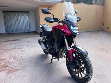 Honda cb500x ABS in perfette condizioni, ultimo modello con abs doppio disco e sospensioni migliori. Perfetta per turismo o come moto da uso quotidiano, facilissima da guidare e con consumi da scooter ( fino a 30 km litro). Guidabile con patente A2. Disponibile con portapacchi per eventuale montaggio bauletto. Vendo per passaggio a cilindrata superiore. Prezzo trattabile per vendita veloce.