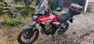 vendo honda cb500x immatricolata a marzo 2021 con 56000km gomme nuove(6000km) tagliando dei 48000 fatto a 49000km tutti presso dealer honda ancora in garanzia ufficiale fino a marzo 2027,monta bauletto e cupolino maggiorato fumè givi (dò anche l'originale honda)come visibile in foto in più 2 tipi di paramani mai montati di cui uno originale givi ,presa usb x caricare il cellulare