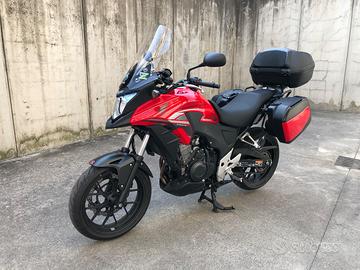 Vendo Honda CB500X, crossover affidabile con bassi costi di gestione, fa 30 km/lt. Moto guidabile con Patente A2 (35kW), perfetta sia per il tragitto casa-lavoro che per lunghi viaggi. La moto è del 2015 con 32.400 km, in condizioni estetiche e meccaniche eccellenti, sempre ricoverata al coperto. Revisione effettuata a luglio 2025 e bollo pagato fino a gennaio 2027. E’ la versione Travel Edition, equipaggiata con bauletto da 45 lt. e valigie laterali dello stesso colore della carrozzeria, tutto originale Honda, cavalletto centrale e laterale, contamarce, parabrezza alto, supporto per navigatore, manopole riscaldabili. Pronta per viaggiare. Vendo a 4.100€ per cambio tipologia.